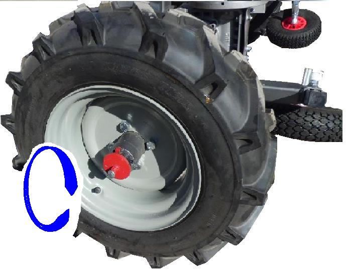 Il movimento è assicurato da un motore elettrico centrale, collegato alle ruote tramite un sistema di trazione a catena che permette una buona aderenza al terreno anche in presenza di suoli umidi. Lo snodo posteriore centrale consente inoltre alla macchina di seguire meglio il profilo del terreno e l’andamento delle baulature, migliorando la stabilità durante il lavoro.
